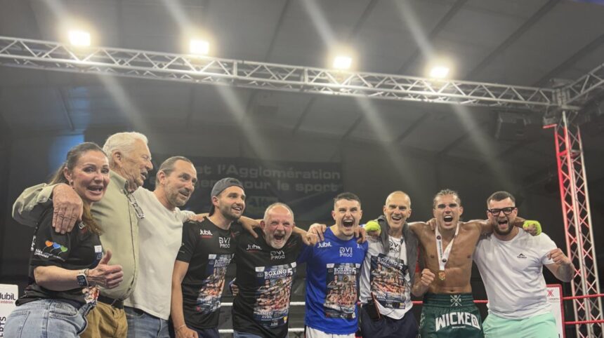 Vient alors le retour attendu sur le ring d’Evan Laroudie, fils de son coach et organisateur, mais aussi champion d’Occitanie de boxe anglaise avant ses deux années de pause. Victoire sans appel et même par disqualification malgré des « sensations difficiles à retrouver, surtout face à un adversaire de dernière minute qui a cassé ma boxe« , jusqu’à recevoir trois avertissements pour coups de tête et saisies, synonyme de disqualification.