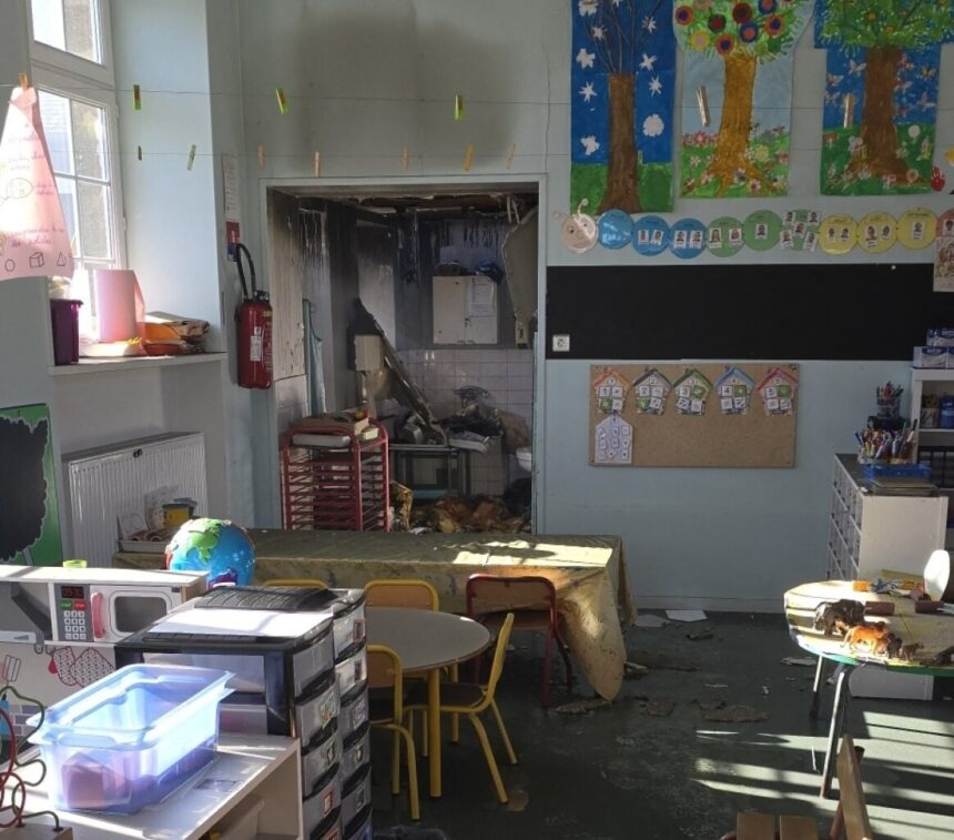 Les sanitaires, situés à proximité immédiate d’une salle de classe accueillant les élèves de maternelle (toute petite, petite et moyenne section), ont été détruits. Une partie de la toiture du bâtiment a également été endommagée, rendant la classe inaccessible.