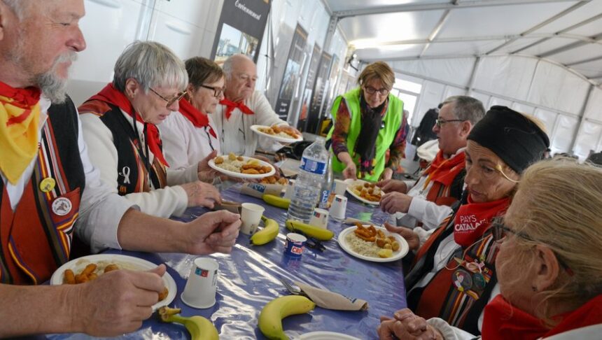Au centre de cette grande mêlée, les bénévoles de l’association Cettarame font vivre la fourmilière. Habillés de leurs gilets fluo, ils ne comptent plus leurs allers et retours entre la cuisine et les tables. « On a calculé, hier on a fait 10 km à pied, sourit cette bénévole, attrapée au vol alors qu’elle attendait de charger son plateau. Ça demande beaucoup d’énergie, mais c’est d’abord un plaisir de rendre service et de participer à cette grande fête. »