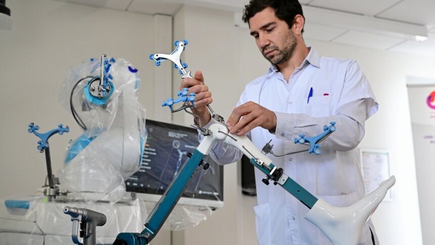 Grâce à l’intelligence artificielle, le chirurgien orthopédique, qui garde la main, peut ajuster avec précision la position de la prothèse de genou en temps réel pendant l’intervention. Cela garantit un positionnement optimal des implants, limitant les douleurs et les raideurs post-opératoires. Le tout sans reste à charge pour le patient, indique la clinique.