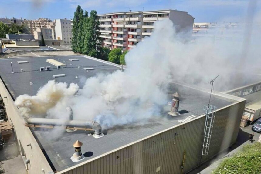 Coincée entre plusieurs immeubles d’habitation, l’usine est aussitôt placée sous la surveillance des soldates du feu, rapidement déployés sur place. Des riverains les photographient en train d’inspecter la toiture du bâtiment.